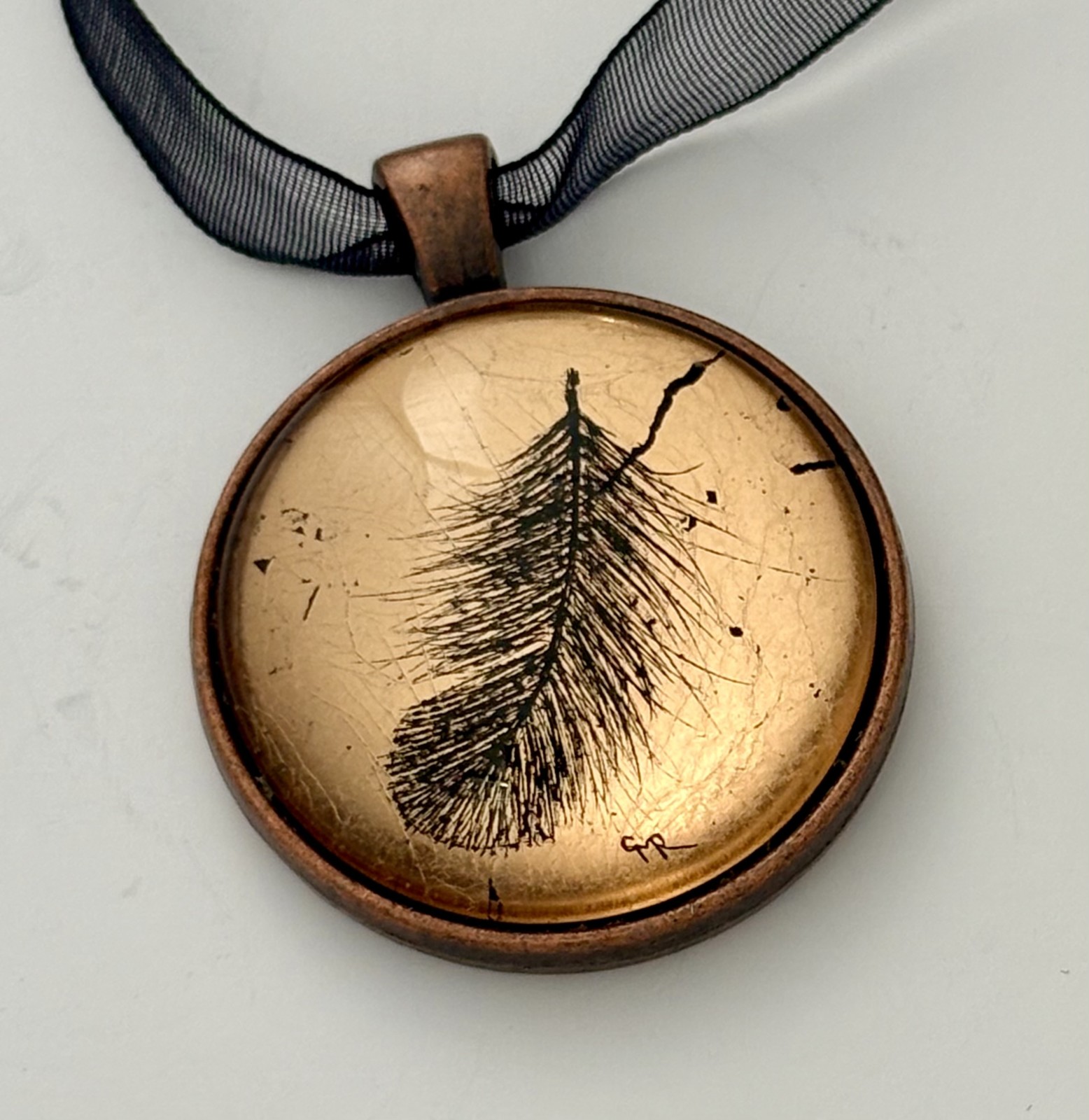Stunning rosey gold Fluffy Feather pendant is hand gilded in 22ct Rose gold leaf.